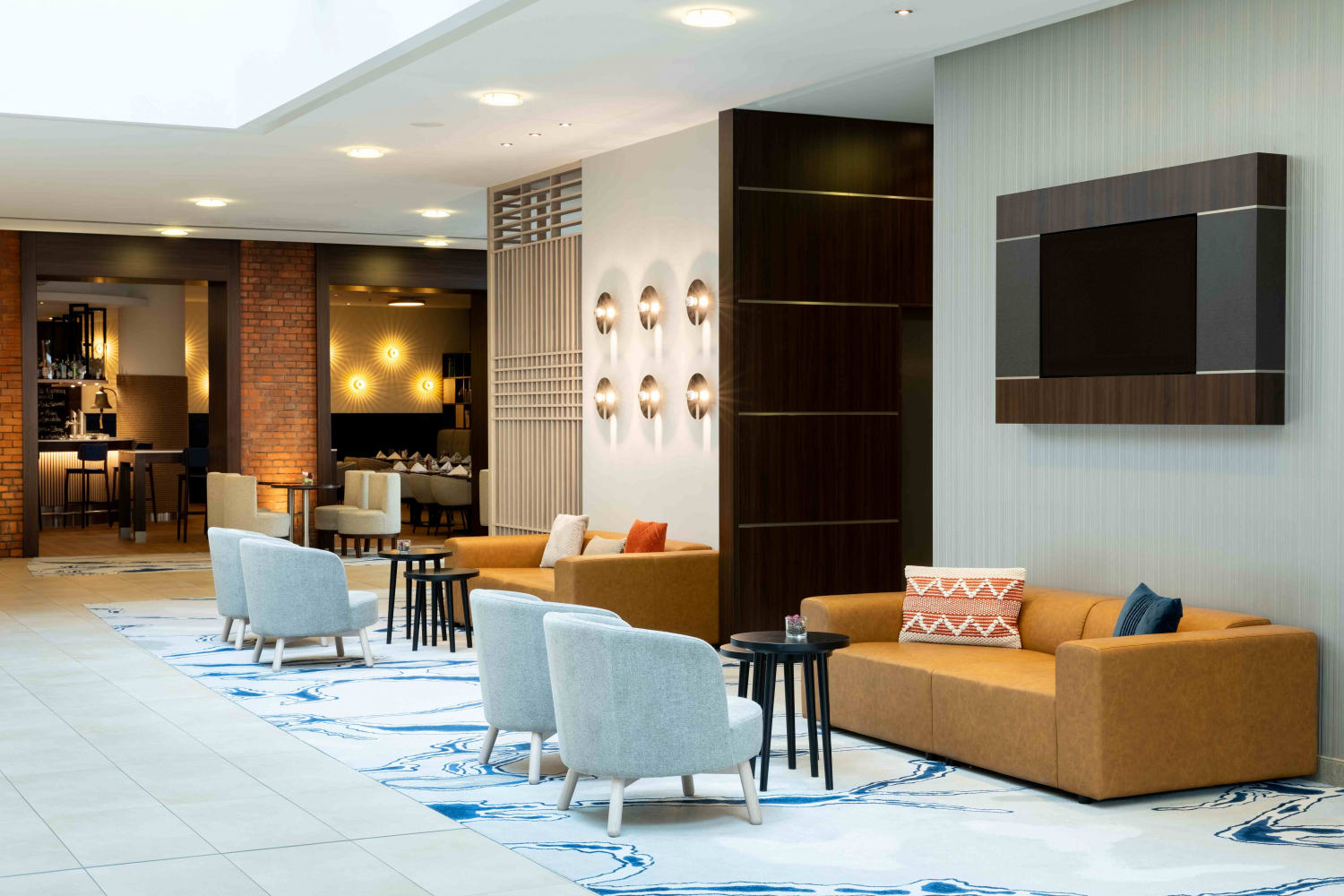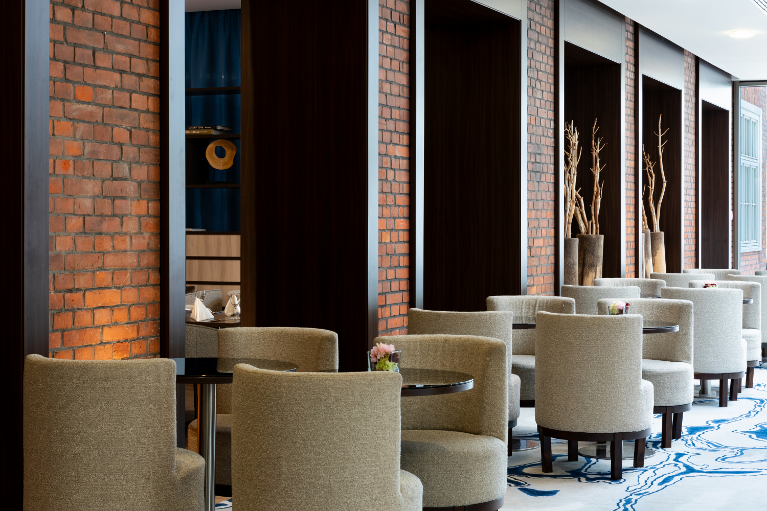 Entdecken Sie die Binnen Bremer Bar im Mittelpunkt des Hotels mit großer Fensterfront zum Bürgerpark.